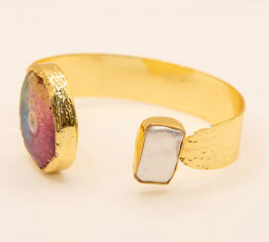 Gold Plated Rainbow Agate and Freshwater Pearl Bracelet LAST ONE!!