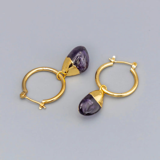 Gold Plated Oval Blue Gem Earrings LAST ONE!!