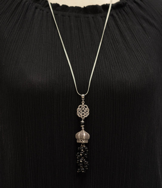 Fleur-de-lis with Champagne Stone Beads Necklace