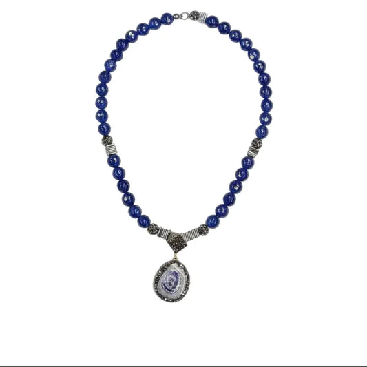 Blue Agate Pendent and Beaded Necklace