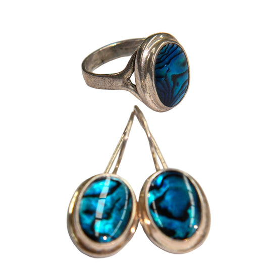 Sterling Silver Blue Green Mother of Pearl Small Oval Ring