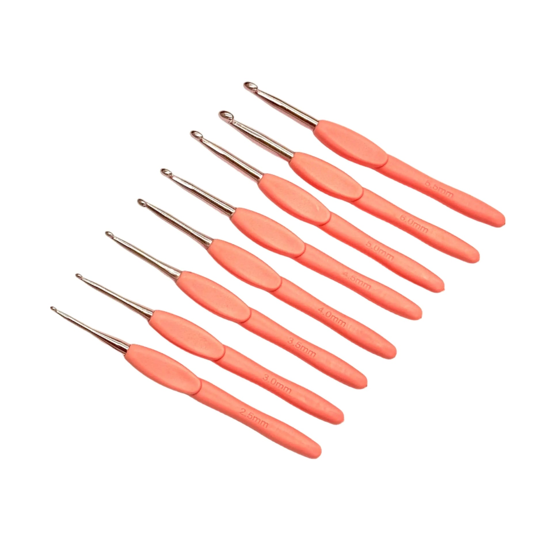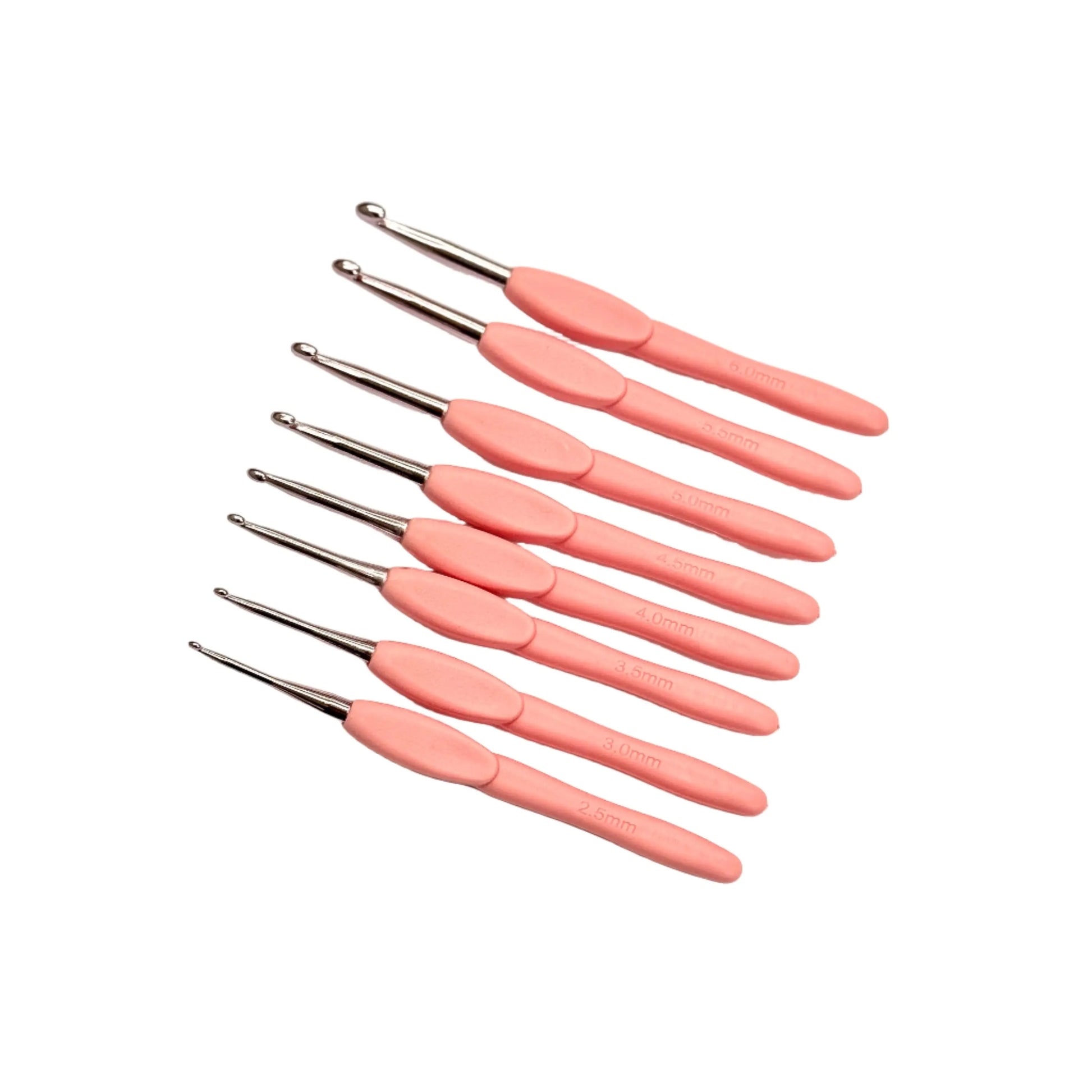 Pink Ergonomic Silicone Handle Aluminium Crochet Hook SET